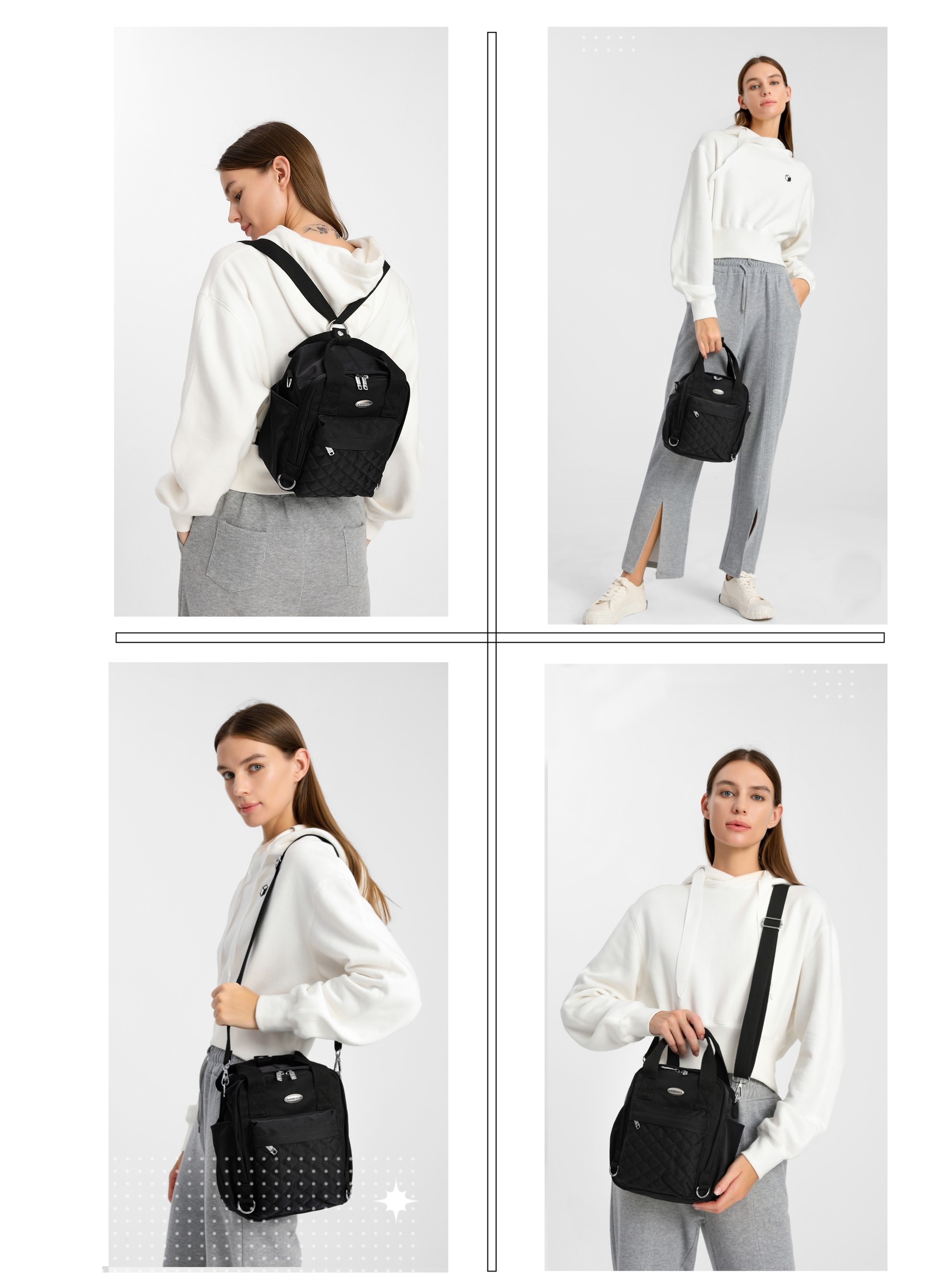* 4ways to carry: by adjusting the strap,it could be easily changed from handbag to backpack,shoulder bag or messenger bag.